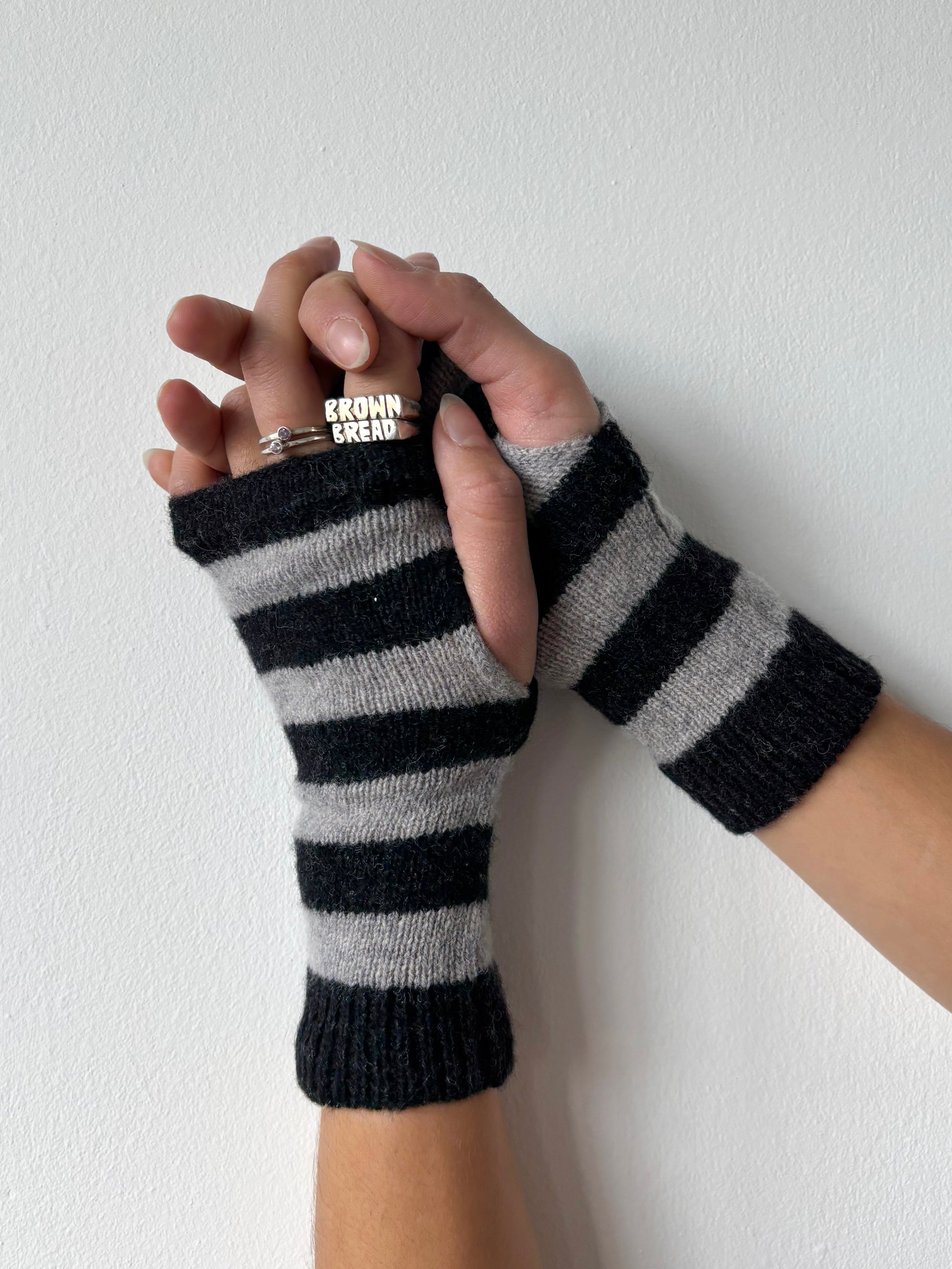 Wool & cashmere fingerless gloves made in London from deadstock yarns